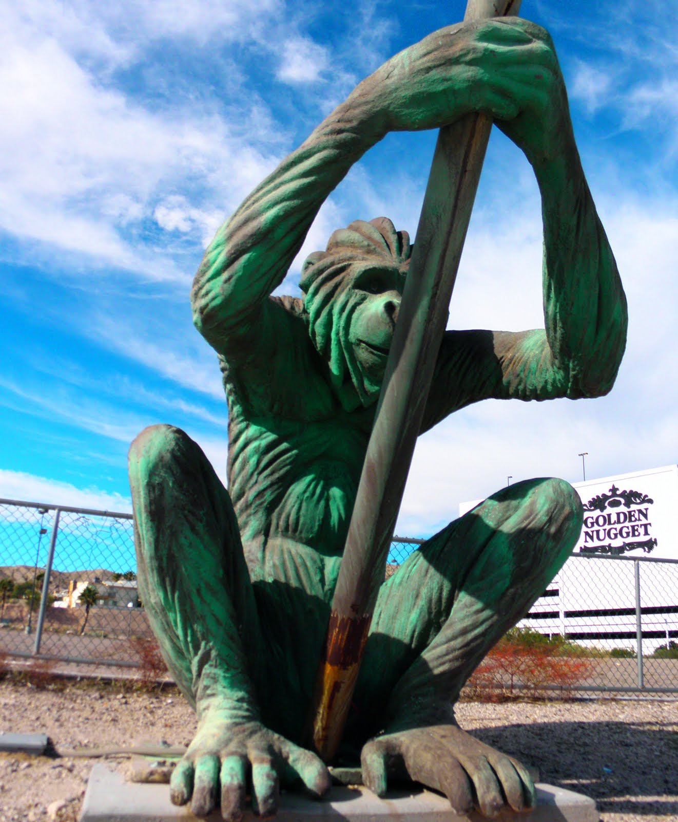 While driving up the ramp to park at The Golden Nugget (my favorite hotel casino in Laughlin)...I noticed that....with some elevation (7th Floor)...one could get another look at the infamous giant monkey statutes in Laughlin.